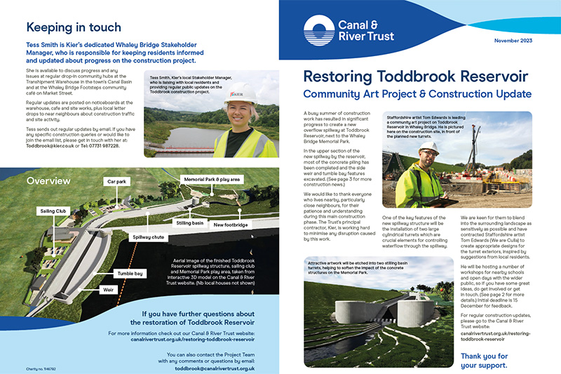 Shown here is the regular newsletter issued to Whaley Bridge residents updating them on the Toddbrook Reservoir dam construction project (see above).